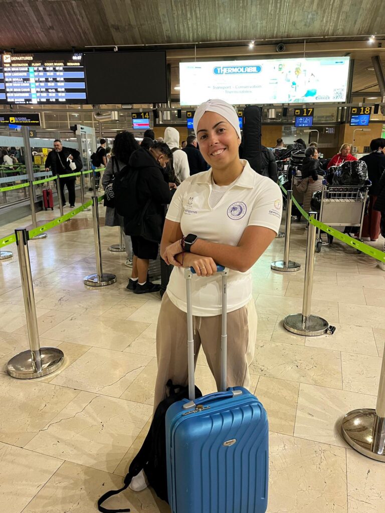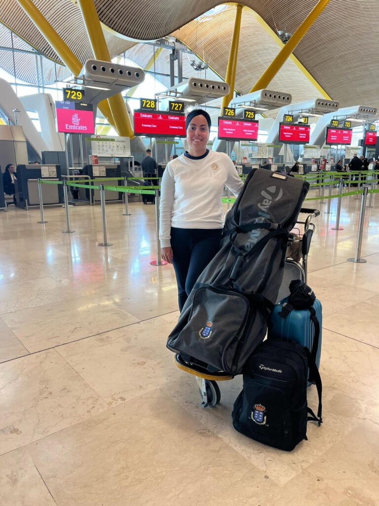 María Velázquez is currently on her way to Dubái. The Golf Las Américas player took off from Barajas at 14:20 CET after arriving in Madrid from Tenerife yesterday. She will be in the Emirates for the world final of the Meliá Golf Tour, where she will compete on three courses over three intense days.