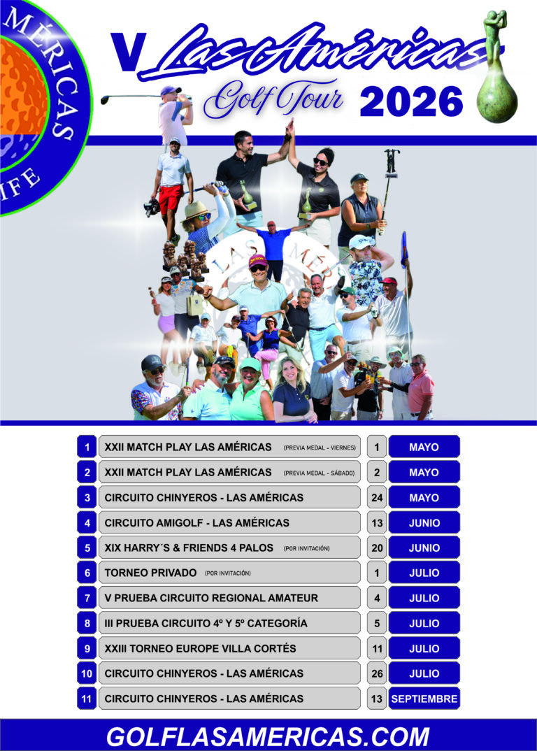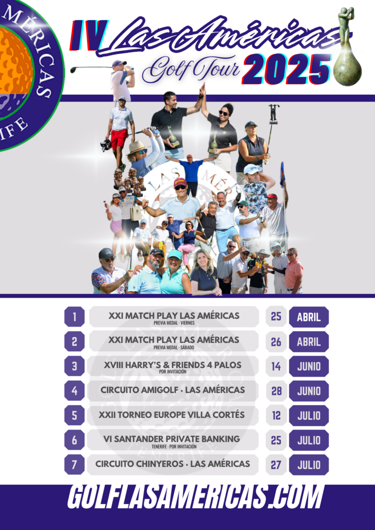 A continuación encontrará la lista completa de los torneos programados. Para más información póngase en contacto directamente con Golf Las Américas en: reservas@golflasamericas.com o por teléfono al: +34 922 752 005